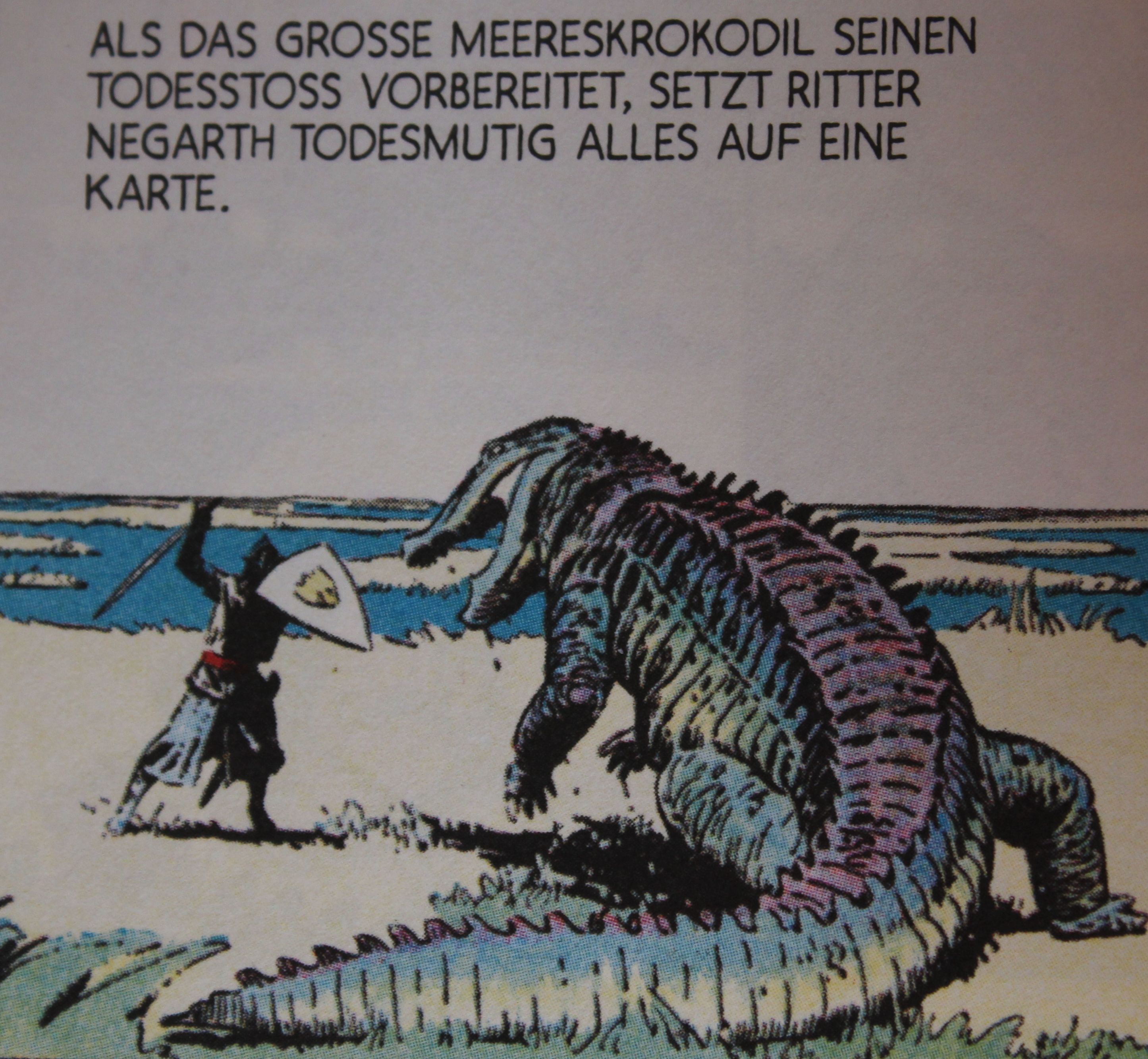 Abb. 13: Negarth kämpft gegen das Meereskrokodil (Seite 18)