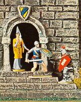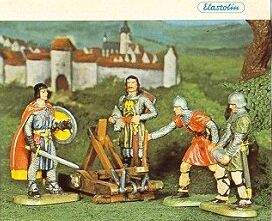 Abb. 6: Prinz Eisenherz verteidigt ein Burgfräulein (aus einem Hausser Elastolin-Katalog)